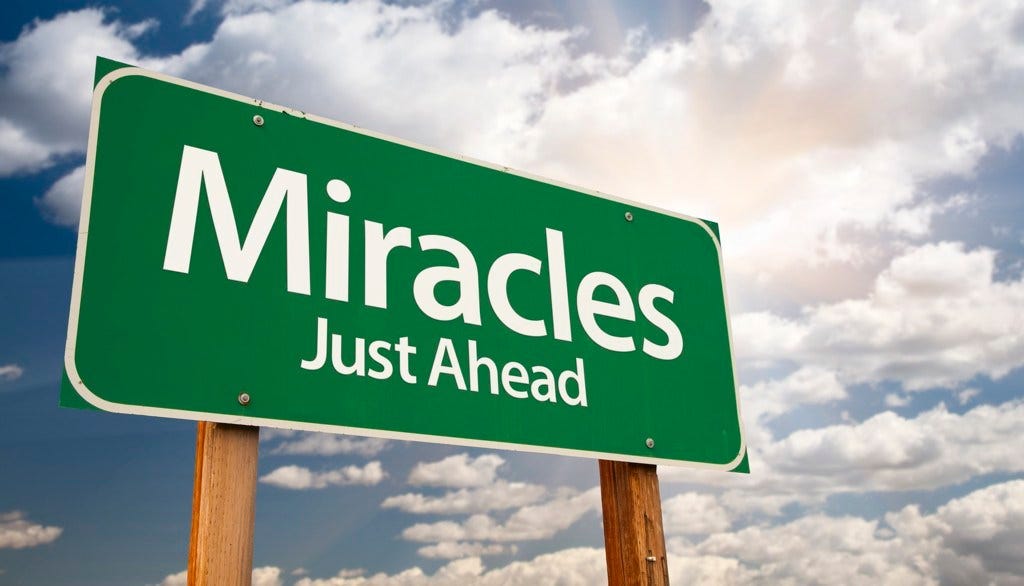 That said, I feel compelled to challenge you on the word/concept of miracles. Not that I don't believe in miracles.