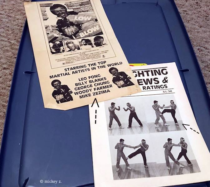 Like most martial artists of my generation, I dreamt of being the next Bruce Lee. The difference is I went out and did something about it. I studied Bruce’s original style (Wing Chun) and then diligently branched out to learn a wide array of techniques from a wide array of NYC martial artists. In addition, I’ve actually appeared in a dozen or so “films” (yes, I use that term loosely). I’ve still got the movie posters and magazine covers to prove it: