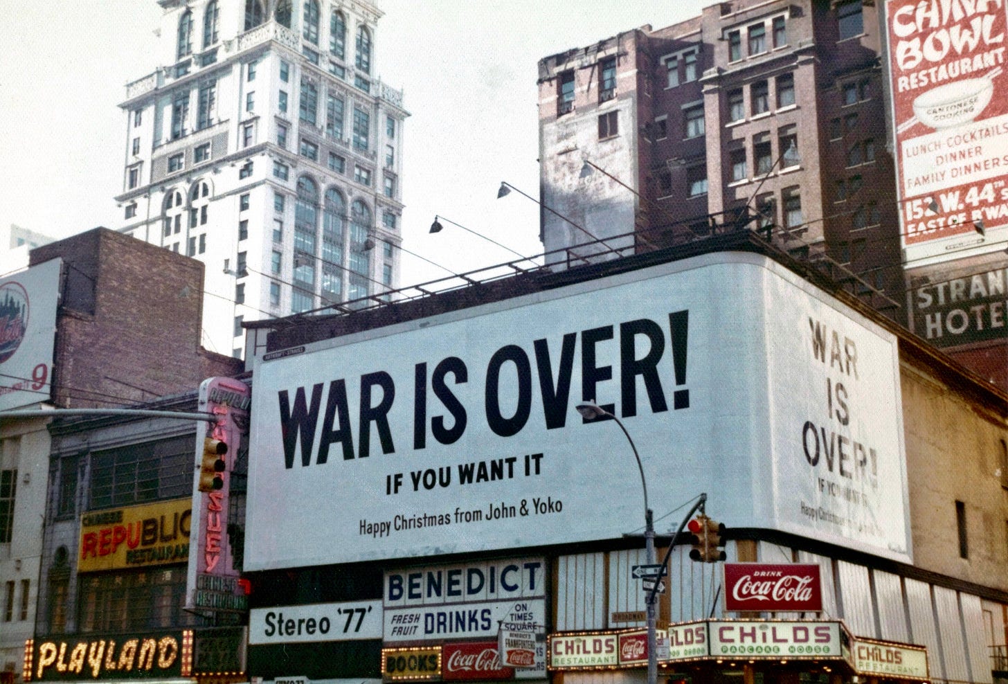 Fifty-five years ago this week, John Lennon and Yoko Ono paid to have massive posters hung in 12 countries around the world. Above is the billboard that was placed in Times Square during the 1969 holiday season.