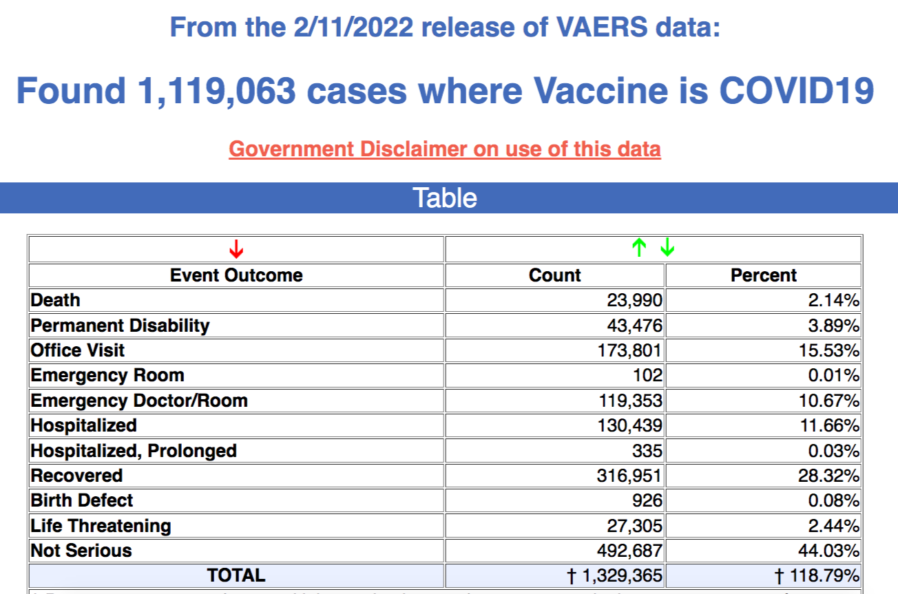 The Vaccine Adverse Event Reporting System (VAERS) is brimming with reports of side effects. FYI: VAERS is the primary government mechanism for documenting adverse vaccine reactions in the U.S. As of February 11, 2022, on VAERS, there have been reports of: