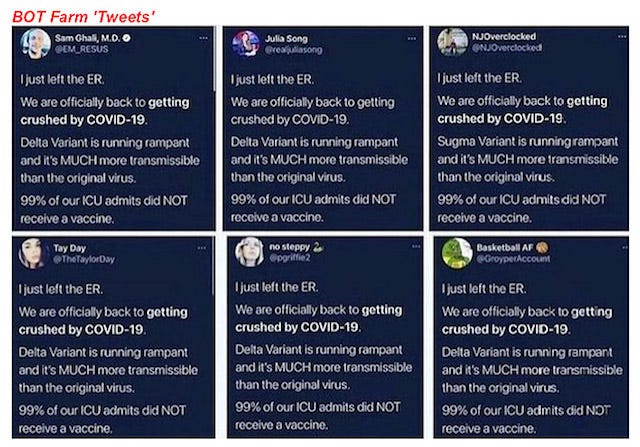 Fake, bot-created memes like this stir up emotions, spread disinformation, and manufacture opinions. I have literally seen friends and loved ones sharing the exact images above. Again: You are being willfully manipulated 24/7 to think whatever the elites want you to think.
