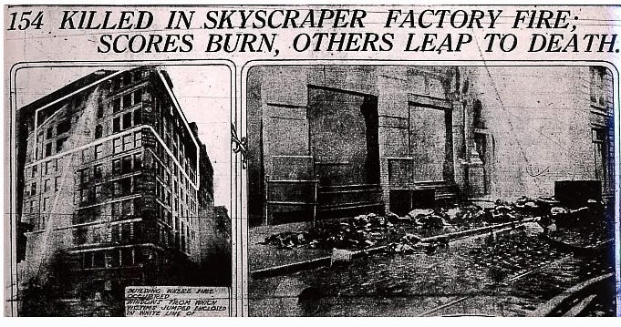 Experts who study such things claim that people will rarely throw themselves out of a burning building but one of NYC’s other most notorious fires challenges this narrative. During the Triangle Shirtwaist fire of 1911, 62 garment workers trapped on the top floors of the Asch Building either fell or chose to leap from the windows as the inferno accelerated.