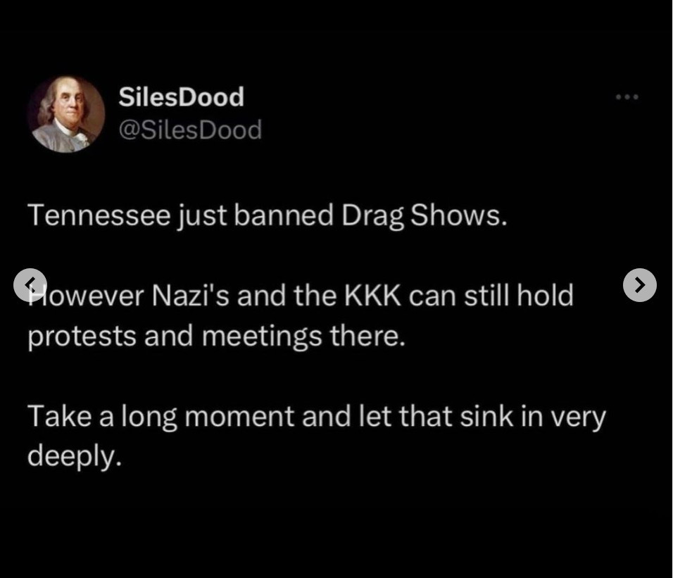 Click here for more information on the legislation in question. Spoiler alert: Drag shows weren’t “banned.” They were regulated.