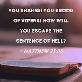 “You serpents, you brood of vipers, how shall you escape the sentence of hell?” (Matthew 23:33)